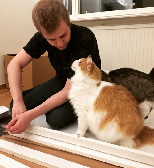 Fakir och Mango hjälper husse att skruva ihop dom